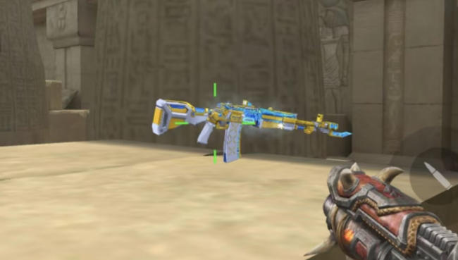 以金色为主且枪身外无额外特效的武器变为金蓝相结合,冰霜之气全面迸发,与纯金形成鲜明的对比,视觉更优雅。