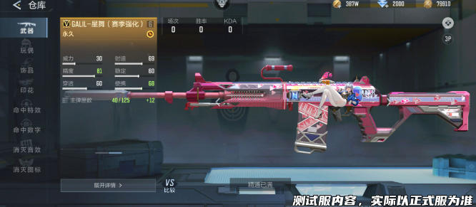 赛季强化版与普通版的数据也有一些区别,赛季强化版的GALIL-星舞在移速、射速、精度等方面会有较大幅度的提升,受击上抬高度也达到了质变的0.2。