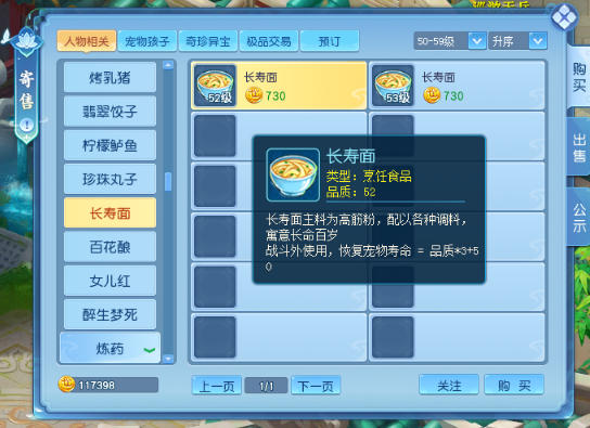 要说最能寄托人们长寿愿望的美食,那一定非长寿面莫属。《逍遥情缘》中也还原了这道经典美食,并且它确实具备延长寿命的功效。此外,给宠物食用珍珠丸子,也能恢复少量寿命。