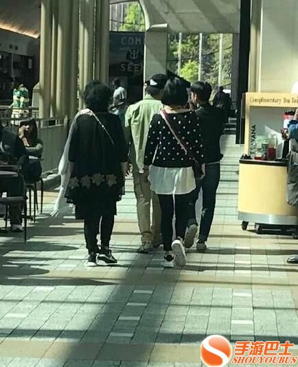 从照片中看,两人一身休闲装扮,黄晓明的妈妈也一直跟随着两人。