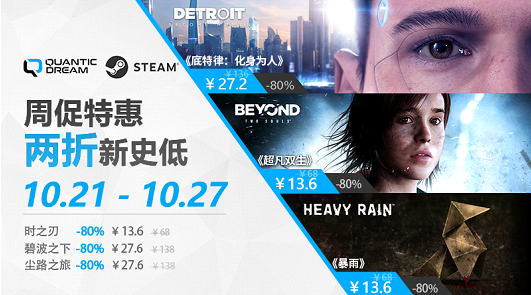 秋意渐浓,宅家畅玩游戏正当时!Quantic Dream旗下全阵容佳作周促火热开启。2025年10月21日至10月27日,多款口碑大作直降80%,以亲民价格解锁沉浸式游戏世界。 《底特律:化身为人》...
