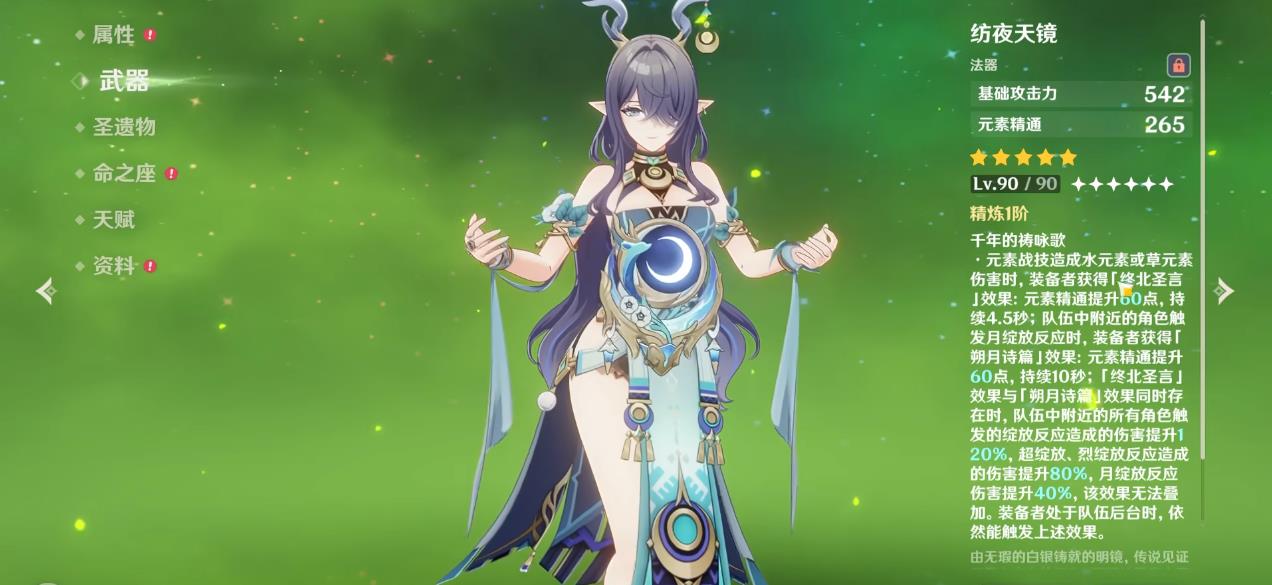 手游巴士(www.shouyoubus.com)2025年09月26日:在原神的元素反应体系中,菈乌玛以 “月绽放” 机制革新者的身份登场,其专武 “纺夜天镜” 凭借 “终北...