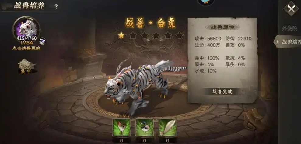 手游巴士(www.shouyoubus.com)2025年11月10日:在《攻城掠地》的战兽体系中,5 星白虎凭借大范围攻击与群体减伤的核心优势,成为国战与比武场的 “破阵利器”。但不少...
